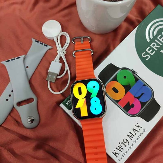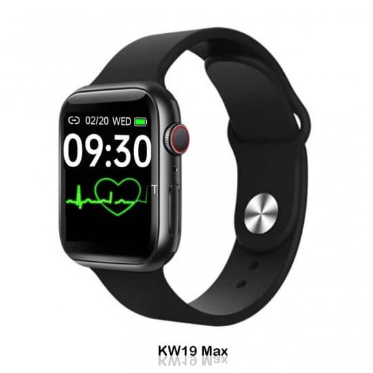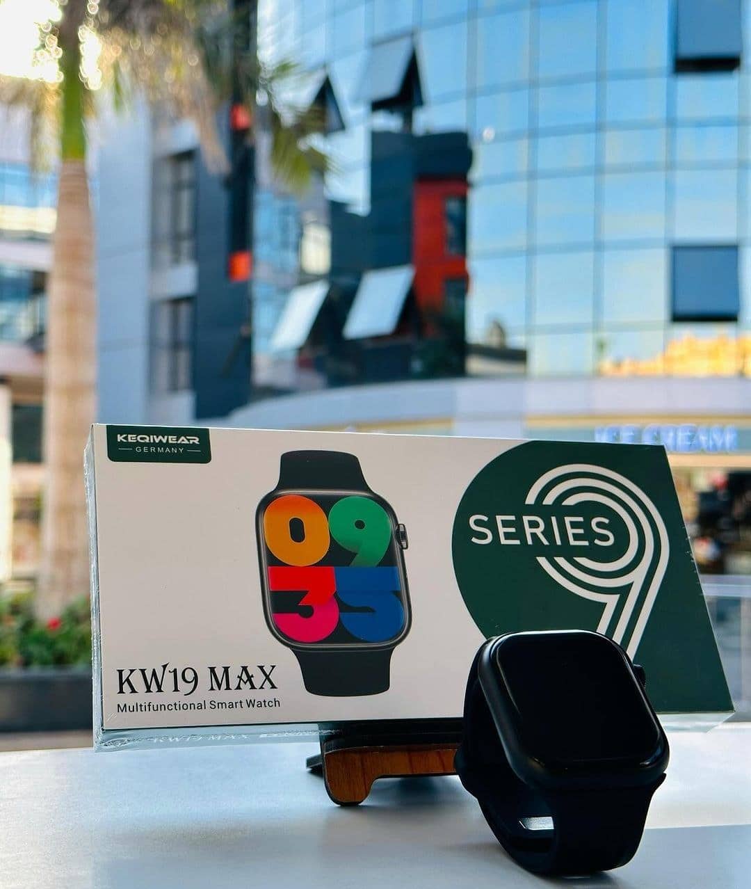 این ساعت هوشمند ابعادی به اندازه 47.6 در 40.3 در 11.2 میلیمتر دارد و وزن آن 35.4 گرم است که طراحی آن شبیه به اپل واچ است. این ساعت دارای پین ضامن بند است که از لغزش بندها جلوگیری میکند. در سمت راست ساعت هوشمند KW19 Max میکروفون برای مکالمه، دکمه مجیک باتن و دکمه پاور قرار دارد که به کنترل امور ساعت کمک میکنند. اسپیکر ساعت نیز در سمت چپ آن قرار دارد که کیفیت معقولی دارد. در قسمت پشتی این ساعت هوشمند، سنسورهایی قرار دارد که اطلاعات سلامتی شما را بررسی و ارائه میدهد. این ساعت KW19 Max دارای دو مدل بند سیلیکونی ساده و اوشن در بسته بندی خود است و همچنین میتوانید از بندهای اصلی اپل واچ برای آن استفاده کنید. نمایشگر این ساعت هوشمند 2 اینچی با حاشیه کم است و اطلاعات را به شما نمایش میدهد. میزان روشنایی نمایشگر نیز قابل تنظیم است. جنس بدنه این ساعت از آلومینیوم است. سنسورهای سلامتی: