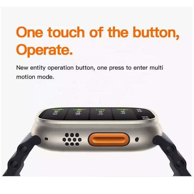 T800 Ultra2 یکی دیگر از کلون های جدید اپل واچ اولترا 2022 است که با قیمت بسیار ارزان در بازار موجود است. این یک ساعت هوشمند اسپرت است که طراحی مربعی با صفحه نمایش LCD بزرگ 1.99 اینچی دارد و به چندین ویژگی از جمله نمایشگر ضربان قلب، مانیتور اکسیژن خون SPO2، حالت های Multisport، ضد آب IP67 و پشتیبانی از تماس بلوتوث مجهز است این ساعت هوشمند مربع شکل و به ابعاد 4/5×38/5×1/4 است وزن آن 50 گرم و در رنگ های متنوع مشکی زرد نارنجی و نقره ای موجود میباشد نمایشگر lcd واندازه صفحه نمایش 1.99 اینچ و وضوح صفحه نمایش 250×285 پیکسل است وبا سیستم عامل Android و IOS سازگار است