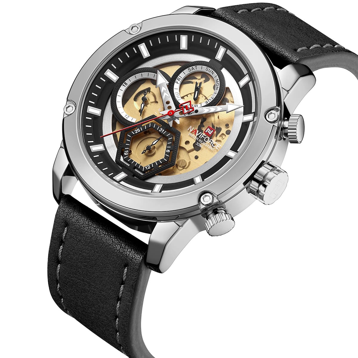 ساعت مچی مردانه بند چرمی ناوی فورس (نیوی فورس) مدل NF9167 S/B/B یکی از محصولات باکیفیت و جذاب این برند است که به دلیل طراحی شیک و ویژگیهای فنی مناسب، توجه بسیاری را به خود جلب میکند. در ادامه به بررسی مشخصات و ویژگیهای این ساعت میپردازیم: